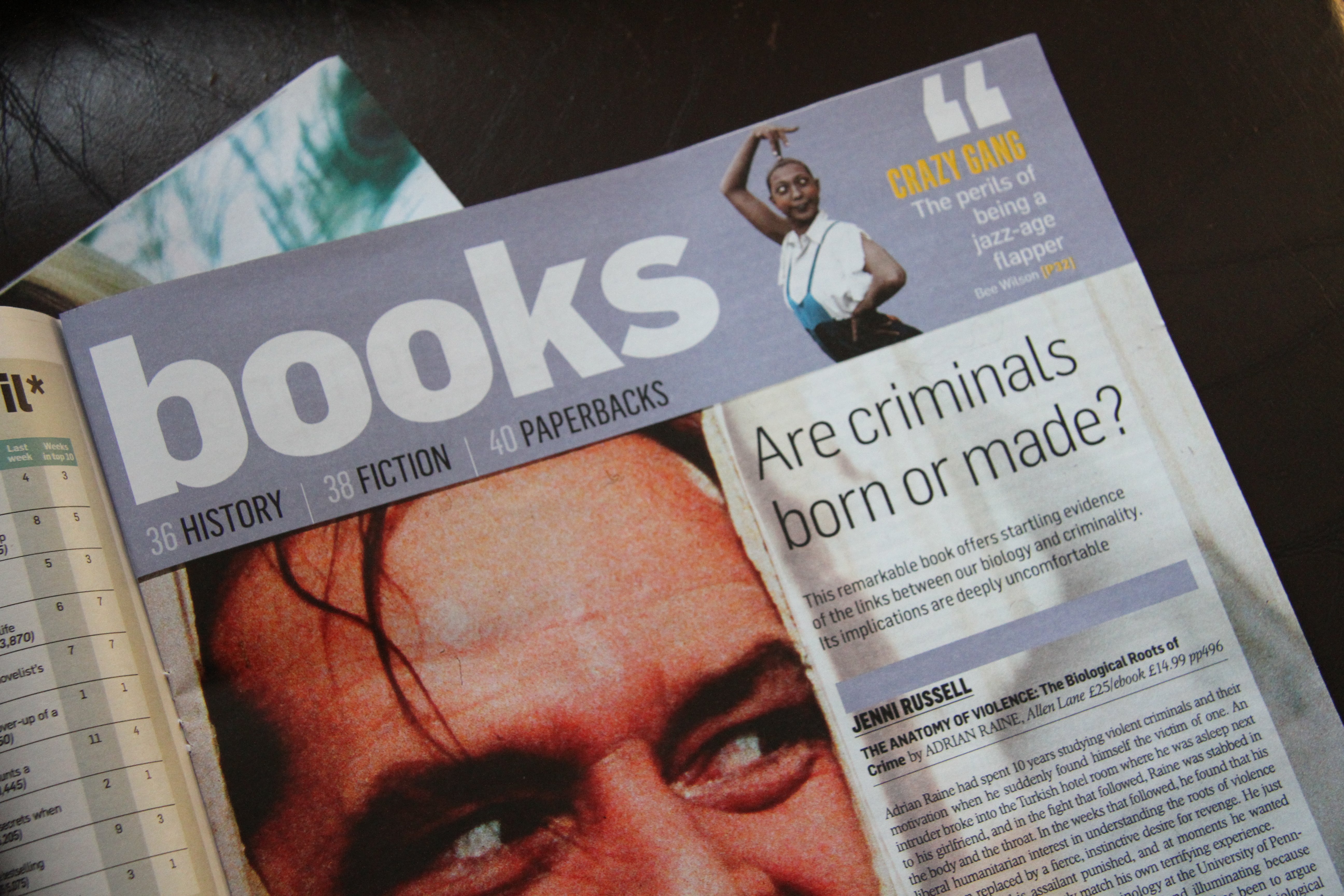 Yesterday’s review pages in The Sunday Times were particularly entertaining. Most of the reviews were interesting and several books were featured that I’ve made a mental note to buy. I’m not sure that this will include the lead title, however: The Anatomy of Violence: the Biological Roots of Crime, by Adrian Raine, reviewed by Jenni Russell. Raine, now a professor at an American university, has spent ten years studying violent criminals and their motivation and concludes that they are shaped by a combination of biological and social factors that are beyond their control. He is particularly keen to emphasise the ungovernableness of the biological factors that are at work, claiming that the brains of psychopaths and sociopaths are actually different from those of ‘normal’ people (though he confounds his argument somewhat by saying that the children of criminals, even if they are adopted, are more likely to commit crimes than other children).