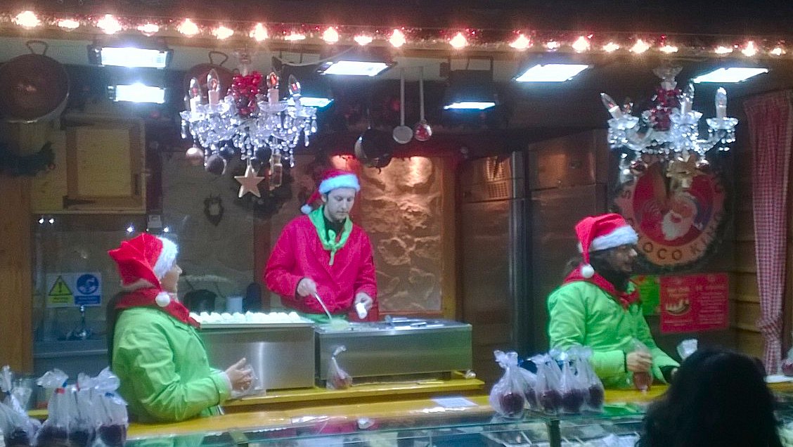 The day job has encroached more than it should have done these past few weeks, as my lovely loyal regular readers will know. As a result, Christmas has been steadily creeping up, almost without my noticing, and certainly without my feeling at all ‘Christmassy’. However, this weekend my daughter-in-law came to stay and we decided to celebrate by visiting Brasserie Forty 4, otherwise known as 44 The Calls, in Leeds. (More about this shortly.) My daughter-in-law discovered that the German Christmas market in Leeds had opened last weekend. It’s been a regular Advent feature in Leeds for several years, but I hadn’t visited it since (I think) 2010. We decided to make a detour.