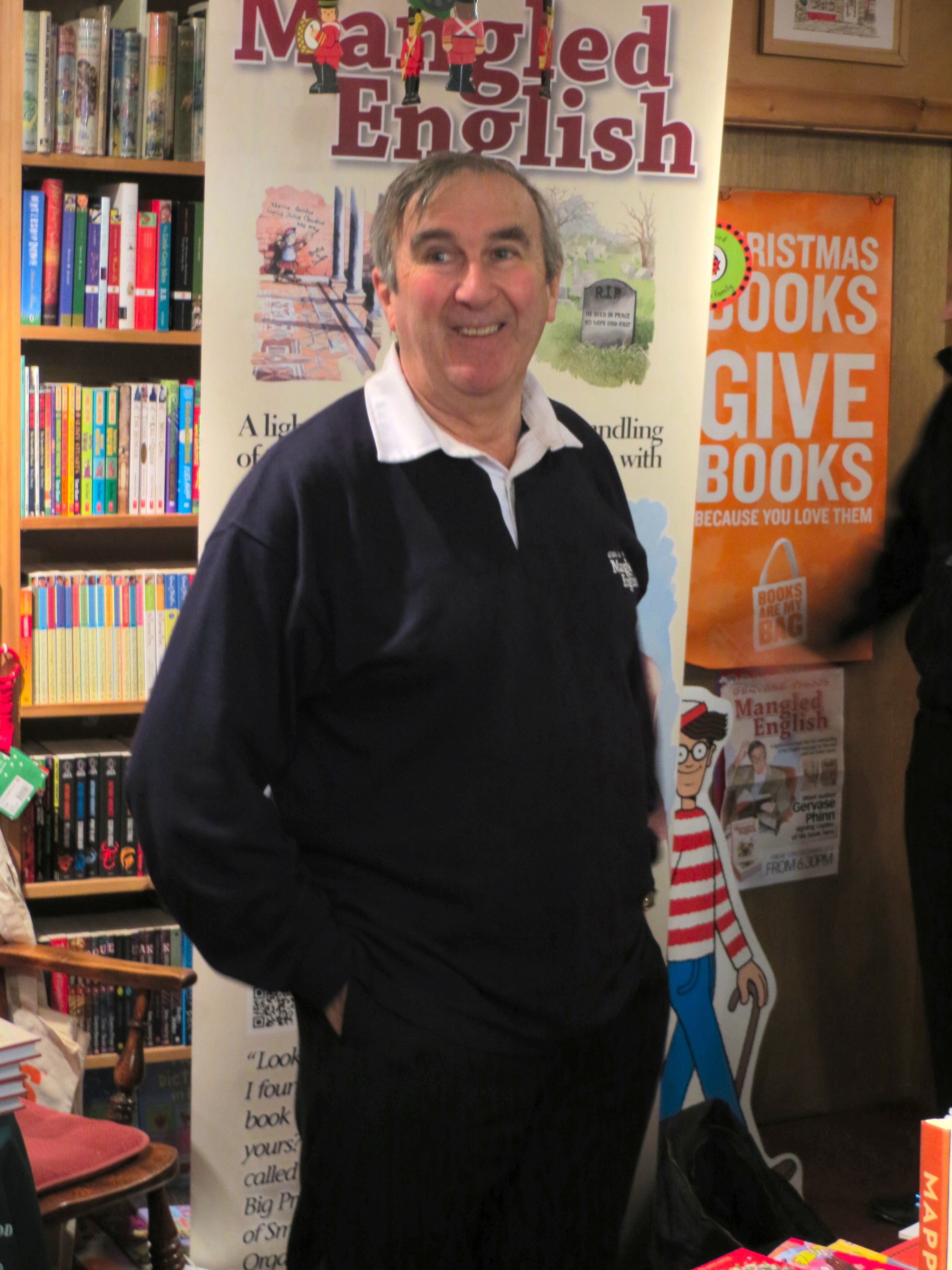 He focused upon his latest book, Mangled English, which delights in highlighting the way we all misuse the language (I certainly do!), and touched upon such matters as mis-spellings, Spoonerisms, Malapropisms and howlingly bad verse (guilty!). He also told many amusing anecdotes about people he’d met. He now spends some of his time as a performing artist on cruise ships, so the tales he had to tell were varied. However, the one that I liked best – although it was also one of the most poignant – was the one about the old people in a care home. One of them was actually his mother-in-law. She was obviously out of the conversation (he was very sensitive in the way that he talked about her dementia), but he derived real humour from recounting the reaction of the old man who was sitting next to her when he was asked his name. He wouldn’t give it and, when asked whether he had played any part in ‘the war’, would only reply ‘I might have done’. Getting no other response from him, Gervase turned to his mother-in-law and asked her name. While she was struggling to remember it, the old man suddenly burst out: “Don’t tell him, Pikey!”